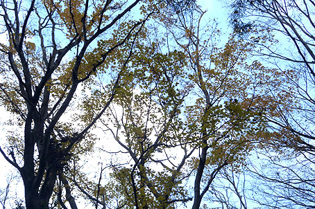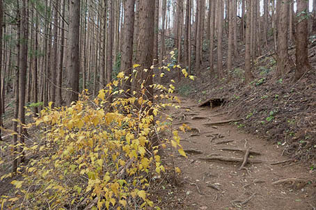尾根に出る直前の植林帯 (林内の低木は黄葉)) |