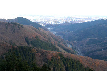 景信山頂下の伐採地から見る市街地 (ほぼ中央上部にスカイツリーもうっすらとだが見える) |
