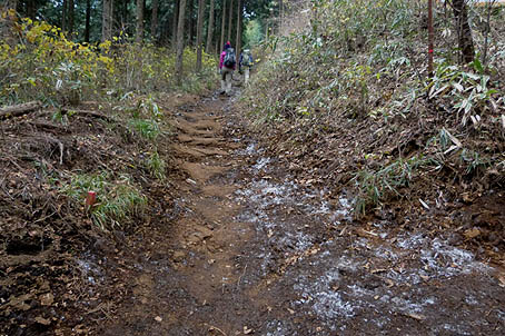 小仏城山直前の登り (道脇ではアチコチで霜柱が立つ) |