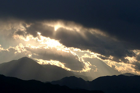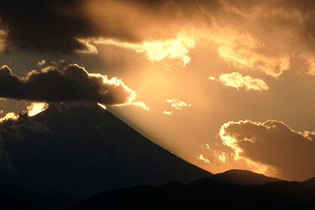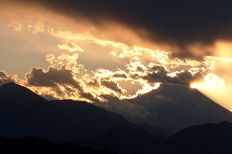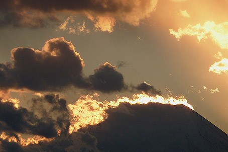 ダイヤ富士直前 (雲の隙間から日差しが出てきた) |