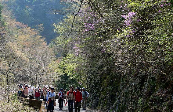 | タイム:川乗橋バス停/9:55→11:00/細倉橋→12:05/百尋の滝/12:45→13:10/林道滝見台/13:25→14:45/川乗橋バス停 [天候/晴れ] [メンバー/31名] [歩数/約15,300歩] |