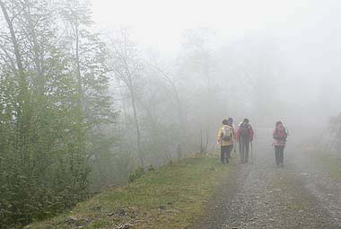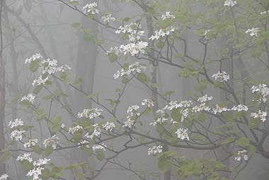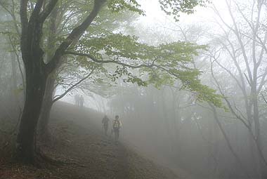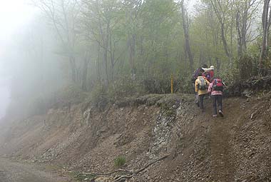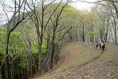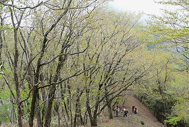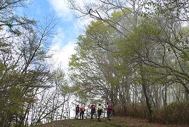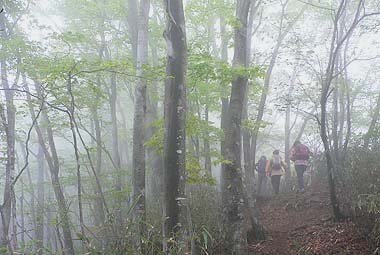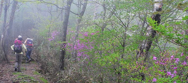 | コース:広河原逆川林道→長沢背稜(日向沢ノ峰付近で合流)→柱谷ノ頭→蕎麦粒山 [天候/曇・霧一時晴れ間] [メンバー/ 6名(山の会)] [歩数/約10,200歩] [歩行時間/8:50-10:30] [概要] :秩父側の尾根ではトウゴクミツバツツジやシロヤシオが一部咲き始めている。長沢背稜でもシロヤシオは散在するがまだ蕾の状態。稜線上ではオオカメノキが花の盛りとなっている。林床ではフモトスミレが時折見られるくらいで花は少ない。 芽吹きは林道周辺では新緑、長沢背稜では低木の緑が鮮やか。高木はまだ芽吹きが始まったばかり。蕎麦粒山では全体的に芽吹きも浅い。 |