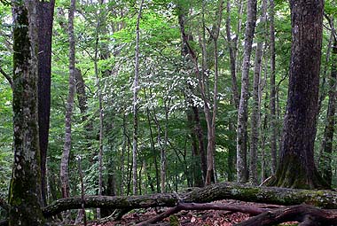 金袋山のミズナラ周辺:平坦な深い樹林帯 |