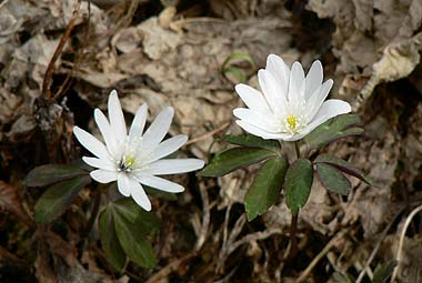 海沢集落近くではアズマイチゲが咲き始めた |