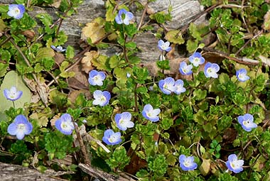 日溜まりではオオイヌノフグリが群生している |