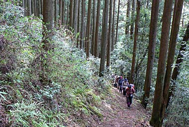 真名井北稜へは植林帯の急登から始まる |