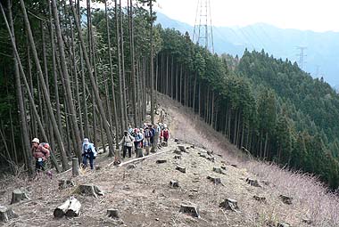 北稜中腹付近の伐採地 |