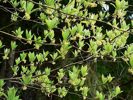 クロモジ:林道周辺では花の盛り |