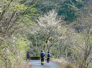 ヤマザクラを見ながら林道を下る |