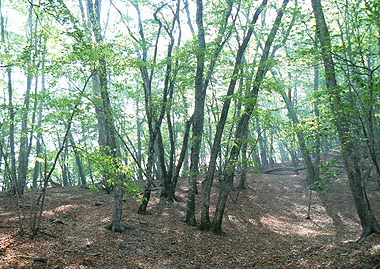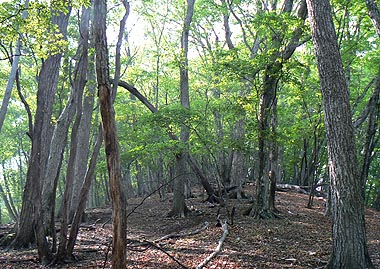 | コース:小川谷林道終点→三又→[酉谷]→酉谷山→長沢背稜・タワ尾根分岐→[タワ尾根]→ウトウノ頭→篶坂ノ丸→ミズナラの巨樹→[人形尾根]→小川谷林道 | ||