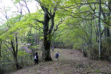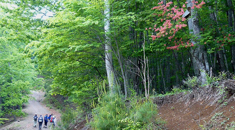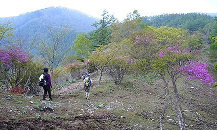 | [概要] 峰谷から赤指尾根を登り千本ツツジに出る。千本ツツジからは尾根防火帯沿いに歩き、雲取山に向かう。。 赤指尾根の中腹ではヤマツツジは花の盛り間近でトウゴクミツバツツジは少し遅めだったが、登るに連れ進み具合は遅くなり、千本ツツジの防火帯ではヤマツツジはまだ蕾でトウゴクミツバツツジはそろそろ花の盛り近いという状態だった。 ブナ坂から先では木々は新緑となり、尾根通しで良く見られるミヤマザクラはまだ蕾だった。花見は2週目以降となるか? |