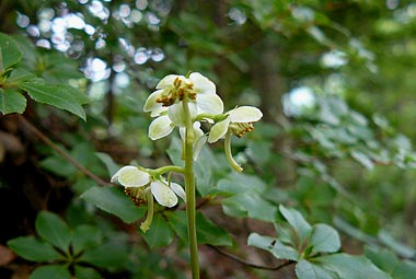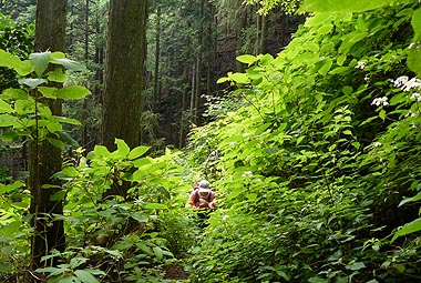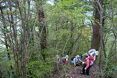 | [概要]:ミツバツツジやアカヤシオなど春先に咲くツツジは色鮮やかで大きな花を咲かせ目にも付きやすい。梅雨時期に咲くツツジはドウダン系もそうだがバイカツツジも花は小さく、特にバイカツツジは葉裏に可愛らしい花を付けるため見過ごしやすい。バイカツツジの花を見に、この花の多い鉄五郎新道を歩く。 バイカツツジの木は多いが、花をを付けている木はごく僅かでやや期待はずれに終わった。まだ咲き始めとはいえ、今年は花付きは良くなさそうだ。 (鉄五郎新道はヤセ尾根に加え、急傾斜も多く歩行には注意を要する。安全を考慮すると登りに使う尾根だが、下りに使う場合でも道が濡れている時だけは避けたい) |