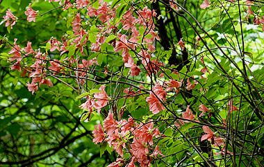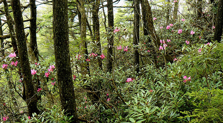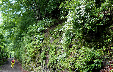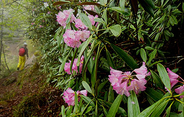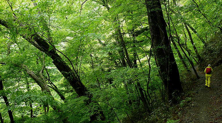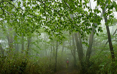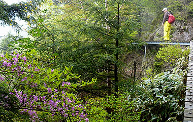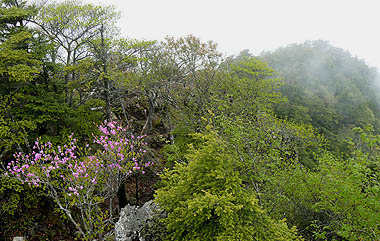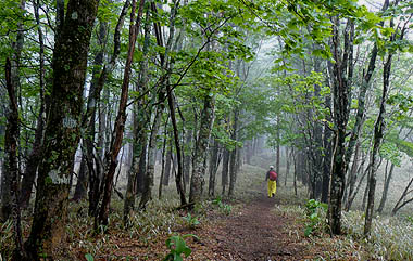 | [概要] :後山林道は入り口から3km付近地点で車両通行止め。林道往復約14kmの歩きは予定外となった。また帰路サオウラ峠から三条の湯までは強雨となり長い道のりは少々うんざりした。出発点に戻った時には薄暗くなってしまった。 稜線のアズマシャクナゲは花の盛りだったが、蕾もまだ多く見られた。今年は花の付きは悪くない。他、稜線上ではそれぞれの数が多くないが、この高さでないと見られない花が今年も見られた。 |
