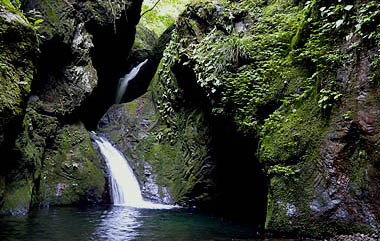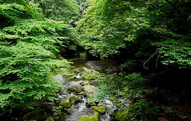 海沢谷 中間点付近:流れの際まで深い緑に覆われる |