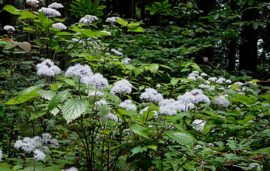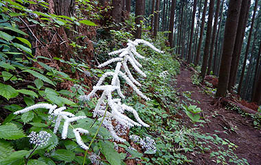 アカショウマ:鋸尾根下部の林下で点々と咲く |