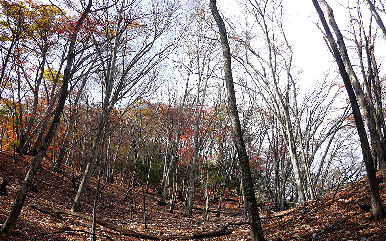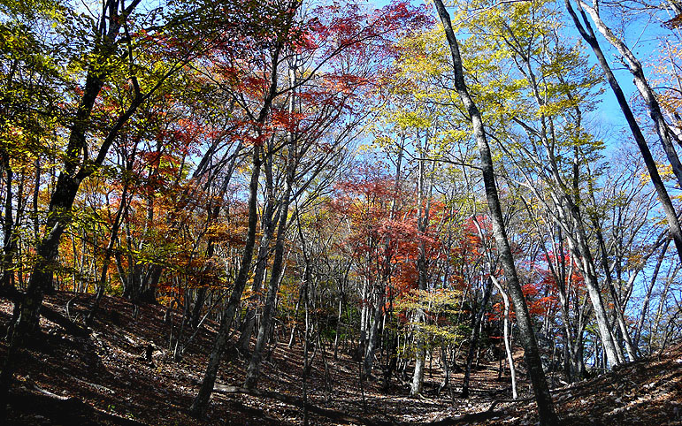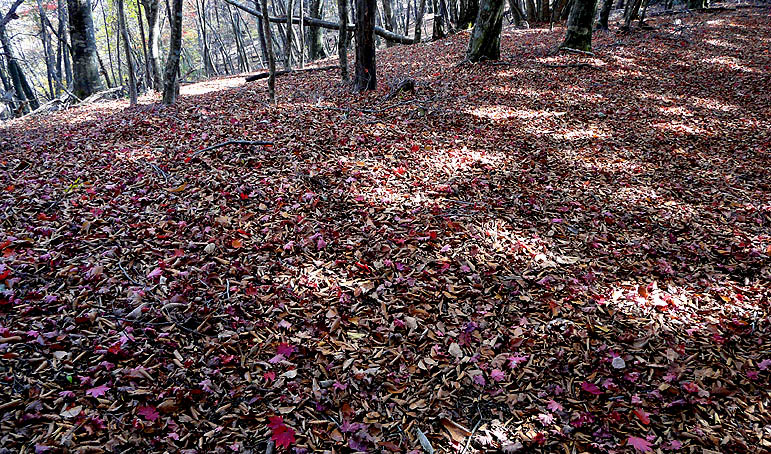 尾根筋のモミジはやや散り気味 |