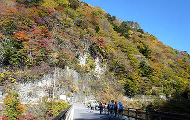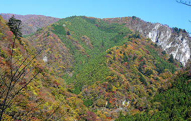 小川谷橋:正面の山肌は紅葉の盛り |