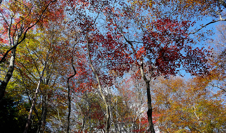 周回コースを下る:再び紅葉する林に入って行く |