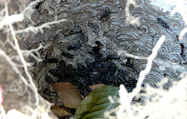 ツヅラ折れの道脇にはオオスズメバチが巣くっている |