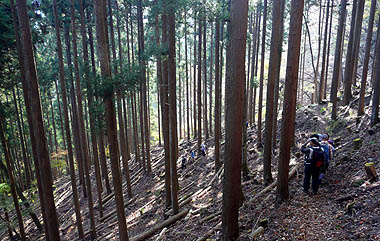 下るうちスギ植林帯に入る |