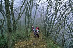 滝入ノ峰を巻く。 この巻道は片側が谷に切れ込んでいるため、慎重に歩かなければならない場所だ。 |