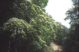 峰林道の上部は、赤指尾根とほぼ平行して走るようになり、道脇には沢山のヤマボウシが自生し、丁度花の時期を迎えていた。 |