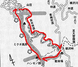 | (コース・タイム) 柳沢峠 9:50→ 10:10 柳沢ノ頭 10:20→ 10:50 ハンゼノ頭 → 11:05 三窪高原(マイクロウェーブ) 11:15→ 12:00 斉木林道[森泉峡](昼食) 13:00→ [斉木林道]→ 14:40 柳沢峠 [天候 ;晴〜曇り] [歩数 ; 約21,800歩] |