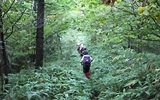 三窪高原を過ぎ、森泉峡で斉木林道に合流するまで尾根道が続く。灌木の中と草原が交互した道となる。 途中、ルートがわかりにくい箇所があり、気を使いながら行動する場面があった。 |