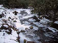 作場平付近の沢の表面は、かなり氷が張っていた。 今年は、予報では暖冬といわれたが、この沢を見る限り、そうでもなさそうだ。 |