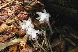 | 唐松谷から野陣尾根にかけては、東京都で唯一(島を除く) の原生林といっても過言でない。この時期、林床のあちこちでギンリョウソウの花を見かけた。ギンリョウソウは奥多摩各山で散見されるが、ここほど登山道の各所で見られるのは珍しい。森が深いということか。 |