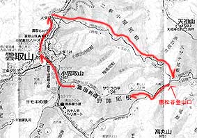 | (コース・タイム) 唐松谷登山口 8:05→ 8:35 富田新道との分岐 → [富田新道(野陣尾根)]→ 10:30 権衛ノ頭 10:40→ 11:20 雲取山(昼食) 11:45→ 12:10 雲取山荘→ 12:35 大ダワ 12:45→[大雲取谷]→ 14:30 林道終点→ 14:45唐松谷登山口 [天候 ; 曇〜山頂付近霧] [歩数 ; 約30,200歩] |