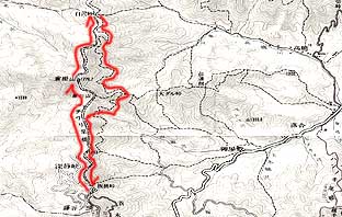 | (コース・タイム) 板橋峠(深泉峡) 9:30→ [ハチワリ尾根]→ 10:35 墨川山 10:40→ 10:55 倉掛山 11:15→ 11:50 白沢峠手前のガレ(昼食) 12:30→ 12:40 白沢峠 12:45→ [斉木林道]→ (※墨川山先で尾根に登り返す) 15:00 板橋峠(深泉峡) [天候 ; 快晴・後薄雲] [歩数 ; 約22,400歩] |