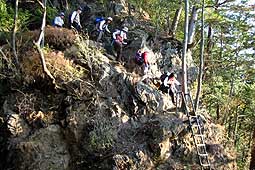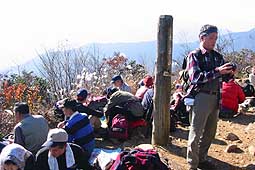 | 西仙波の山頂付近はスズタケが消え、石ごろの尾根を行く。わずかな間ではあるが急坂もあり、やや歩にくい。 この山頂付近は非常に展望が利き、南面は言うに及ばず、快晴の日には北アルプスまで望むことができる。 |