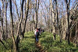 | 牛王院平から東仙波までは、登山地図上では点線のルートということもあり、スズタケのヤブ道も多い。ルートの大半は踏み跡がはっきりしているが、一部不明瞭な箇所もある。こういう道はお天気が何日か続いた後はよいが、雨の翌日の山行などは、足拵えをしっかりしないと下半身はズブ濡れになることもある。 | |||