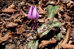 | 帰路、ソーヤの丸デッコの巻き道ではカタクリが数輪咲いていた。まだ日溜まりのごく一部のみだが、30年通った中で、この周辺で3月のうちから花を見るのは記憶にない。 | ||