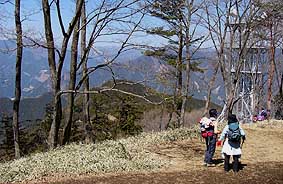 | 広沢山山頂からは一転、緩やかな尾根歩きとなる。ただ周囲はほとんどスギ等の植林で展望はきかない。 最後、電波塔の脇を登ると大塚山頂きとなる。 |