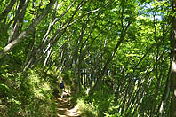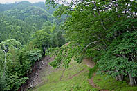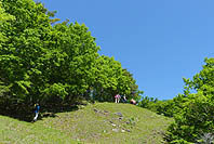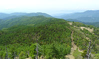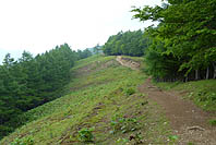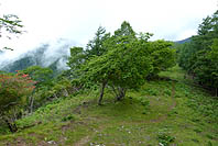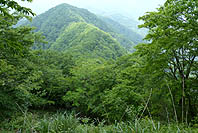 | 草原から笠取山頂を見る:柔らかい緑 | 笠取山頂から草原を見る | 水干周辺:新緑の盛り | 奥秩父縦走路:トウゴクが点々と咲く | |
