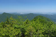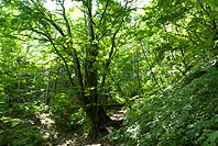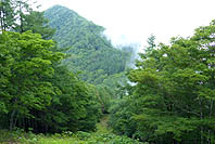 | 沢中腹の大カツラ:深緑に包まれる | 御前山頂:緑茂る | 惣岳山頂:ここも緑茂る | ソーヤの丸デッコから見る山肌 | |