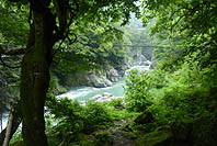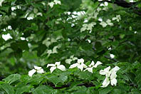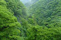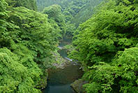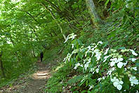 | 惣岳渓谷周辺 :緑深い渓谷。数は少ないが渓谷沿いではヤマボウシが花の盛り。 | ||||