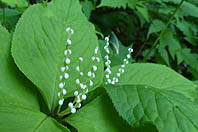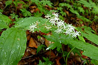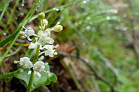 | ハクウンボク:下部で花はやや遅め | フタリシズカ:全域で散見 | ラショウモンカズラ:咲き残り | ユキザサ:尾根筋で咲き始め | |