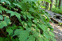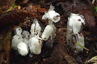 | アカショウマ:中腹まで花の盛り | キツリフネ:林道周辺咲き始め | ギンリョウソウ:中腹周辺で散見 | サワギク:沢筋下部で咲き始め | |