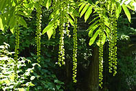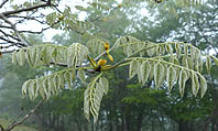 | 日陰名栗峰東面の防火帯:深緑 | 石尾根縦走路:ツツジ咲き・散る道 | 鷹ノ巣小屋下の水場:出は良い | ハネミイヌエンジュ:葉が展開 | |