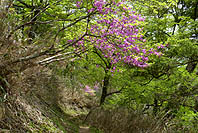 多摩川源流域の山 コース:作場平口(8:15)→[ヤブ沢]→笠取山(10:25)→[縦走路→林道]→石保戸山→犬切峠→作場平口(15:00) ※天候:晴時々薄曇 山麓は緑が濃くなっているが尾根筋は新緑。アズマシャクナゲは場所により蕾から終盤まで様々、花付きは平年並み。山麓ではヤマツツジ、尾根筋ではトウゴクミツバツツジが花の盛り。石保戸山下の防火帯ではミヤマザクラが花の盛り、ウワミズザクラも咲き残る。 [歩数/約40,100歩] | |||