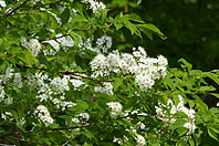| ウリノキ:下部で花の盛り | オオバアサガラ:花はやや遅め | ハクウンボク:上部で花はやや遅め | マユミ:上部で咲き始め | |