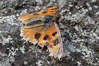 | ヤマキマダラヒカゲ:数は増えた | ヒオドシチョウ:出始めで羽はきれい | テングチョウ:こちらも出始め | キタテハ:越冬個体で羽はボロボロ | |
