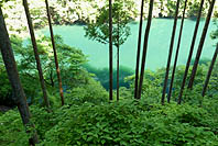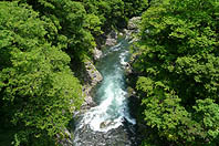 | 白丸湖と周辺の山肌:緑深い | 数馬峡橋から峡谷を見る | 歩道から湖面を見下ろす | 数馬峡歩道 | |