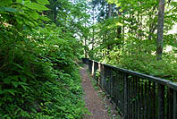 | 鳩ノ巣小橋から見る渓谷:緑濃い | 渓谷から小橋を見る:多摩川は増水 | 渓谷の歩道:深緑の中の歩道 | 渓谷上流の岩場の歩道 | |