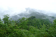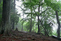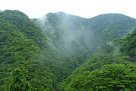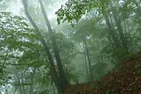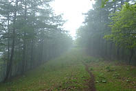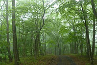 | 鶴峠登山口周辺:緑深い | 奈良倉山頂:濃い霧に包まれる | 松姫峠周辺の林道 | 北面巻き道:霧に煙る緑 | |