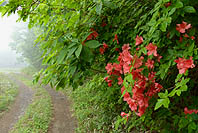 | 七ツ石山への登り | 千本ツツジ:ヤマツツジが点々と咲く | 石尾根縦走路:俄雨で水溜まり | 日陰名栗峰周辺:ヤマツツジが多い | |