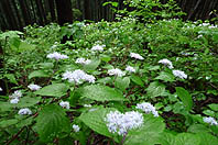 大岳山 コース:上養沢(8:20)→[大岳沢]→[馬頭刈尾根]→大岳山(11:15)→ロックガーデン→七代の滝→[養沢林道]→上養沢(14:40) ※天候:曇一時薄日 今月は雨の日が多く、大岳沢やロックガーデンと周辺の各滝とも水量は豊富。場所によ下草が繁茂する。コアジサイの花は中腹までほぼ終わり、尾根筋でも終盤。ヤマアジサイは下部で点々と咲き始め。草の花は端境期のため少ない。 [歩数/約28,700歩] | |||